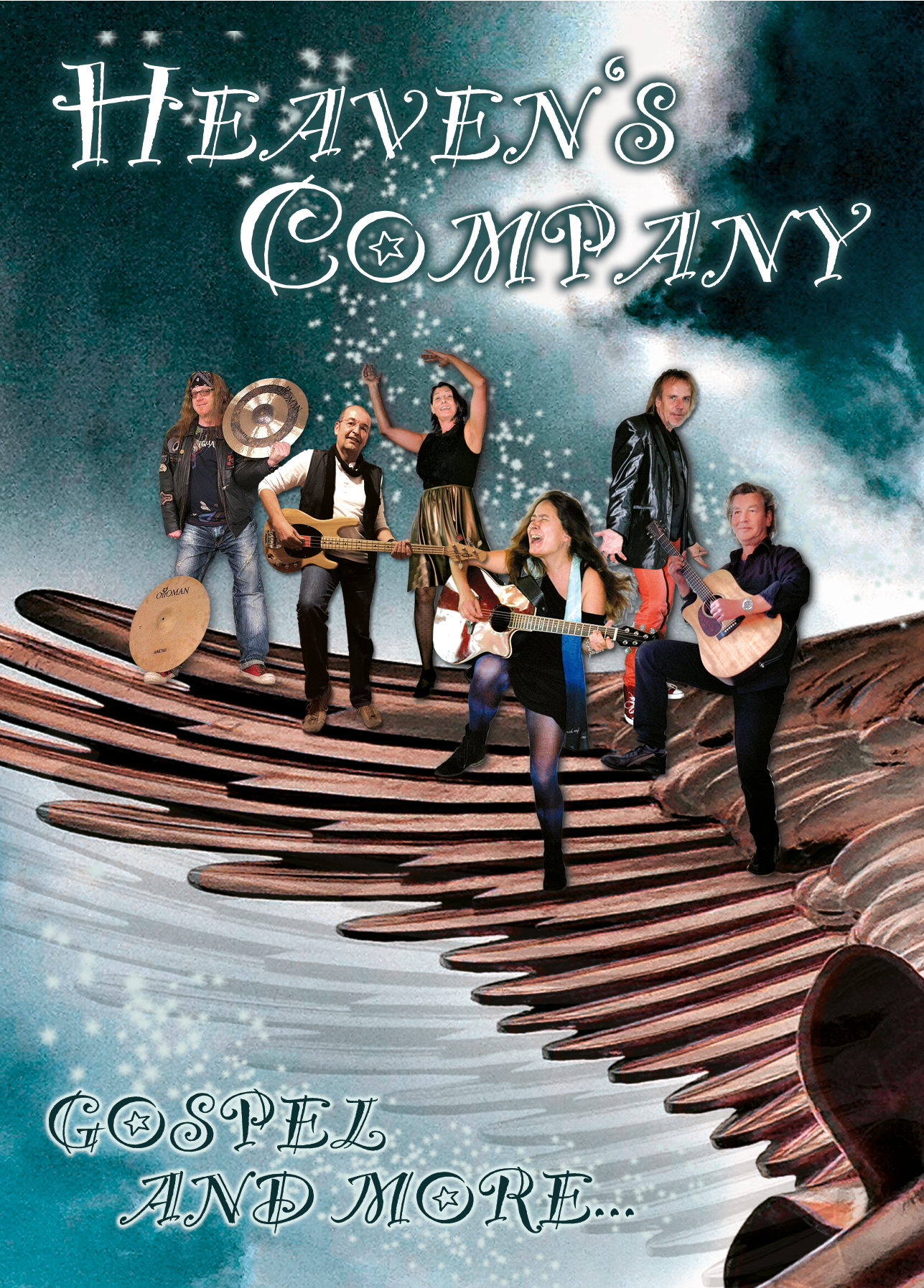 Heaven´s Company dem Himmel ein Stück näher. Gospel and more Sie wollen mitklatschen, Freude haben und mitsingen? Hier ist die Antwort: Heaven´s Company! »Let the good times roll« ist bei jedem ihrer Auftritte mehr als nur Motto. Das Repertoire ist breit angelegt und bietet von Gospel Standards, eigenen Gospelsongs und Pop und Blues alles, was jede Party unvergessen macht. Heaven´s Company steht für modernen Worship, von rockigem Vollgas-Sound bis zur tiefgreifenden Rockballade. Ihre Art zu singen ist anders. Es entsteht sofort ein Funke, der innerhalb kurzer Zeit auf das Publikum überspringt und dieses mitreißt. Die Frontfrau von Heaven´s Company ist die einzigartige Heike May. Ihre Stimme vereint die unterschiedlichsten Stilrichtungen aus den Elementen des Gospels, Blues, Rock und Soul. Diese unverwechselbare Stimme hauchte schon vielen verschiedenen Bands einen unvergessenen Sound ein. Bereichert wird die Band vom Leipziger »Chris Rea« Erik Heyner, der mit seinem Stimmvolumen seit Jahren mit den unterschiedlichsten Bands die Massen verzaubert. Ergänzt werden diese beiden Stimmen von Claudia Mann (Gesang), Peter Nimsch (Gesang) und Jack Wichterich (Bass und Gesang) der schon mit vielen Größen aus der deutschen Musikgeschichte auf der Bühne stand. Heaven´s Company nimmt sie mit auf Ihre persönliche Reise. Sie werden von diesen Stimmen verführt werden, Raum und Zeit vergessen und während des Auftritts dem Himmel ein Stück näher sein Versprochen!